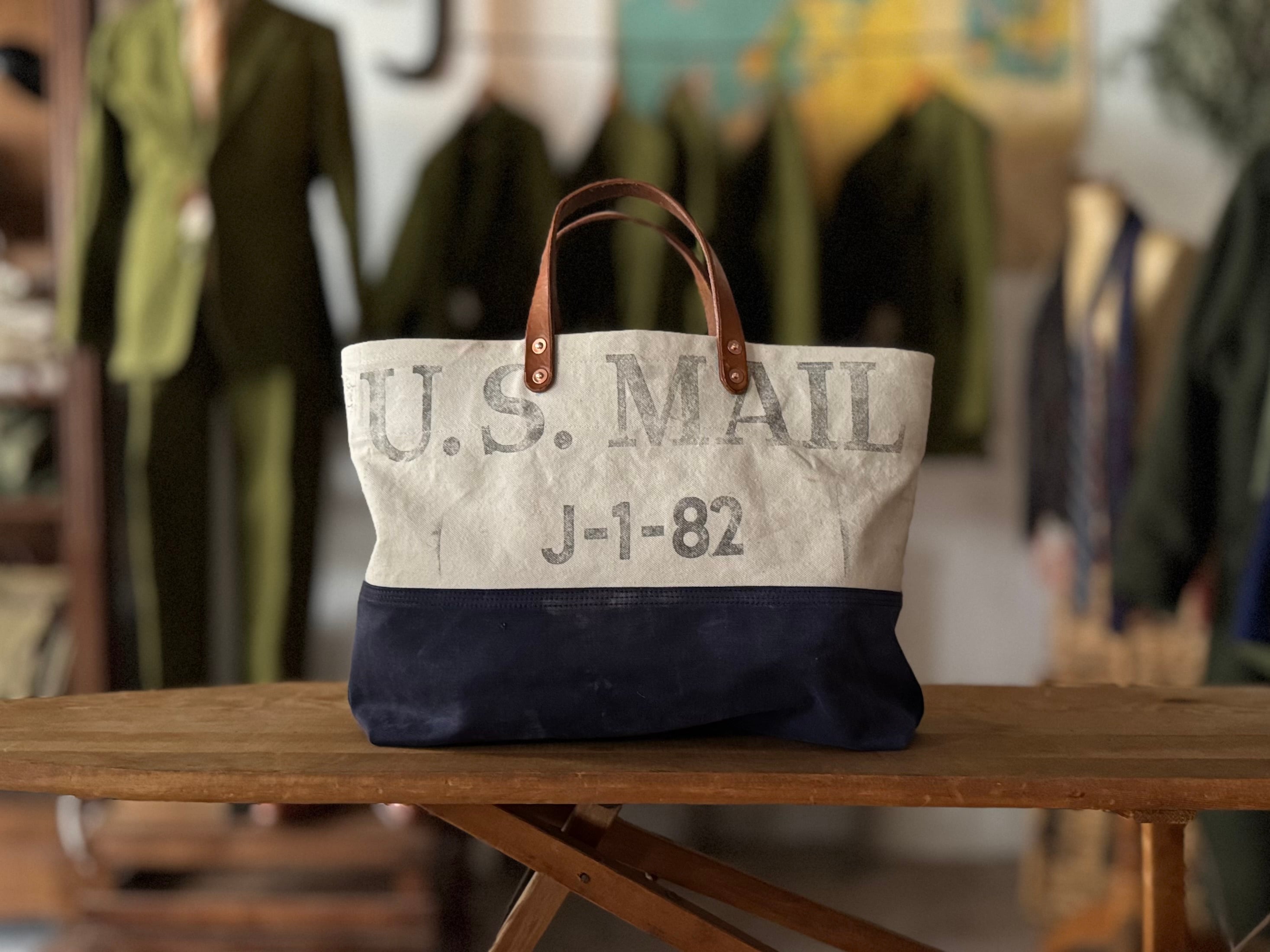 ボディーの白いキャンバス生地は80年代、アメリカ郵便局で使用されていたメールバッグ。